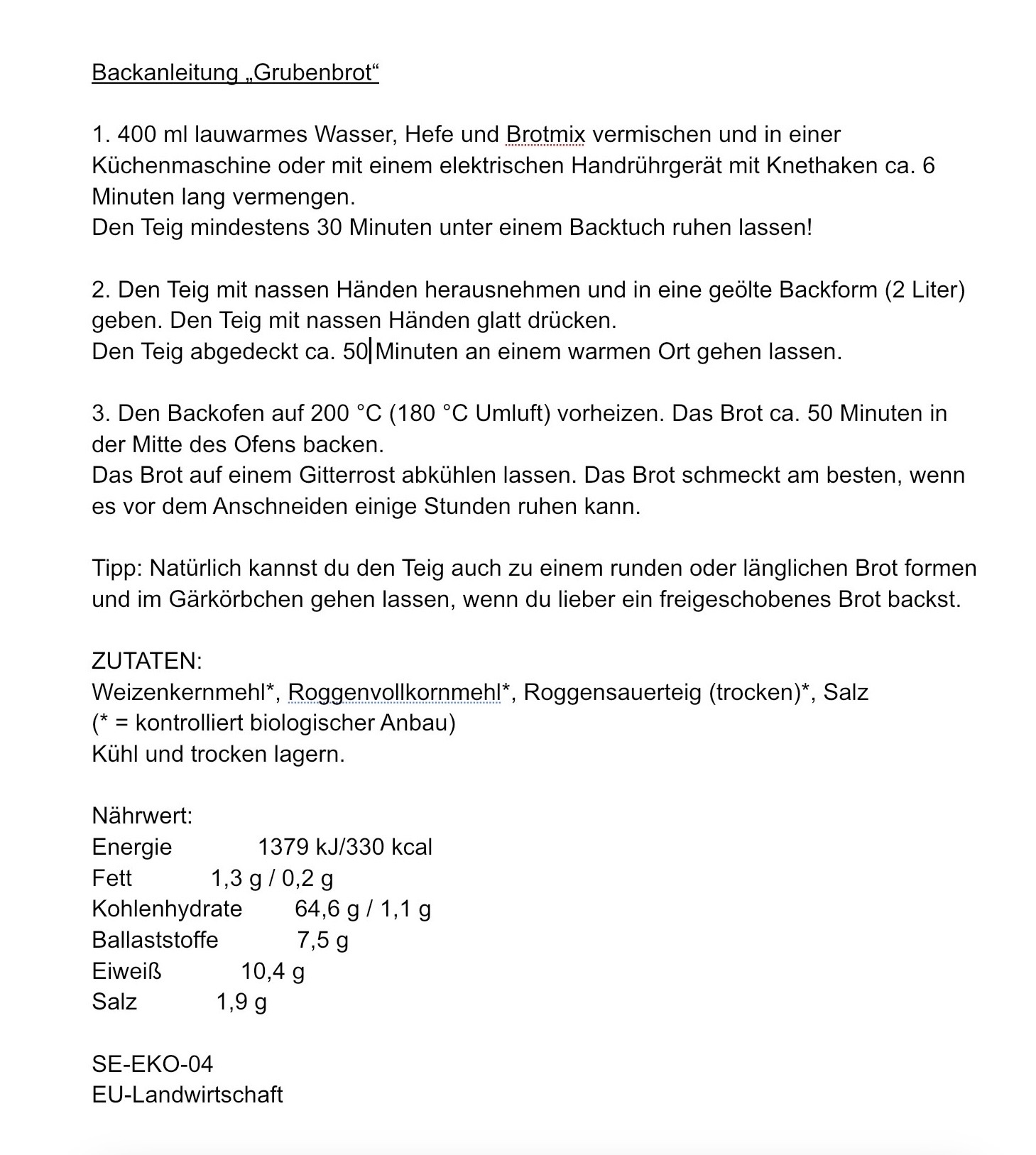 Grubenbrot Bio-Backmischung