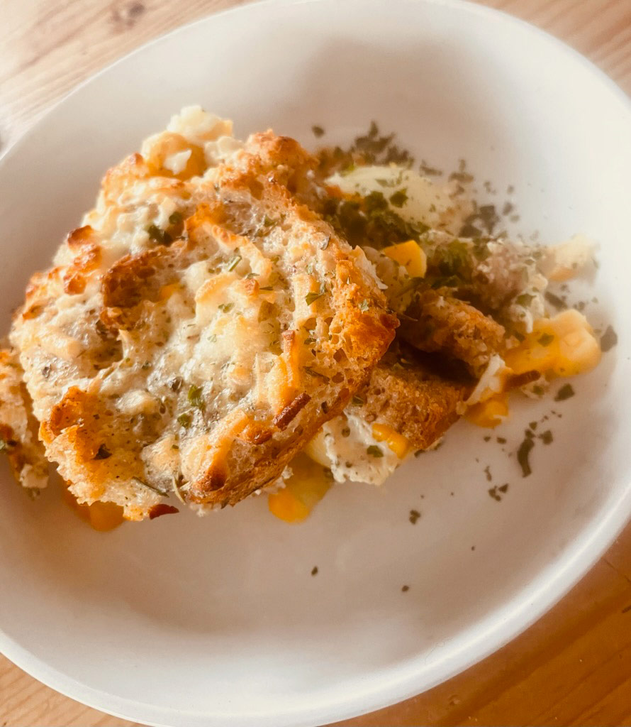 Ta inte bara baguette eller vitt bröd: om du använder olika brödsorter blir smaken extra intressant 🙂